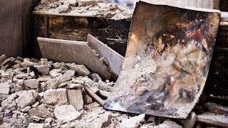 photo #3 above, "A picture taken on August 18, 2013 shows a burnt icon in the Amir Tadros coptic Church in Minya, some 250 kms south of Cairo, which was set ablaze on August 14, 2013." AFP