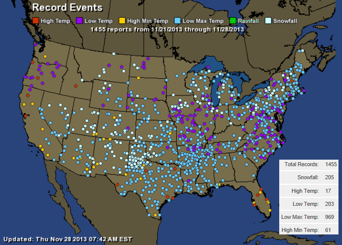 11/29/13, "Almost 1000 record low max temps vs 17 record high temps," IceAgeNow.info